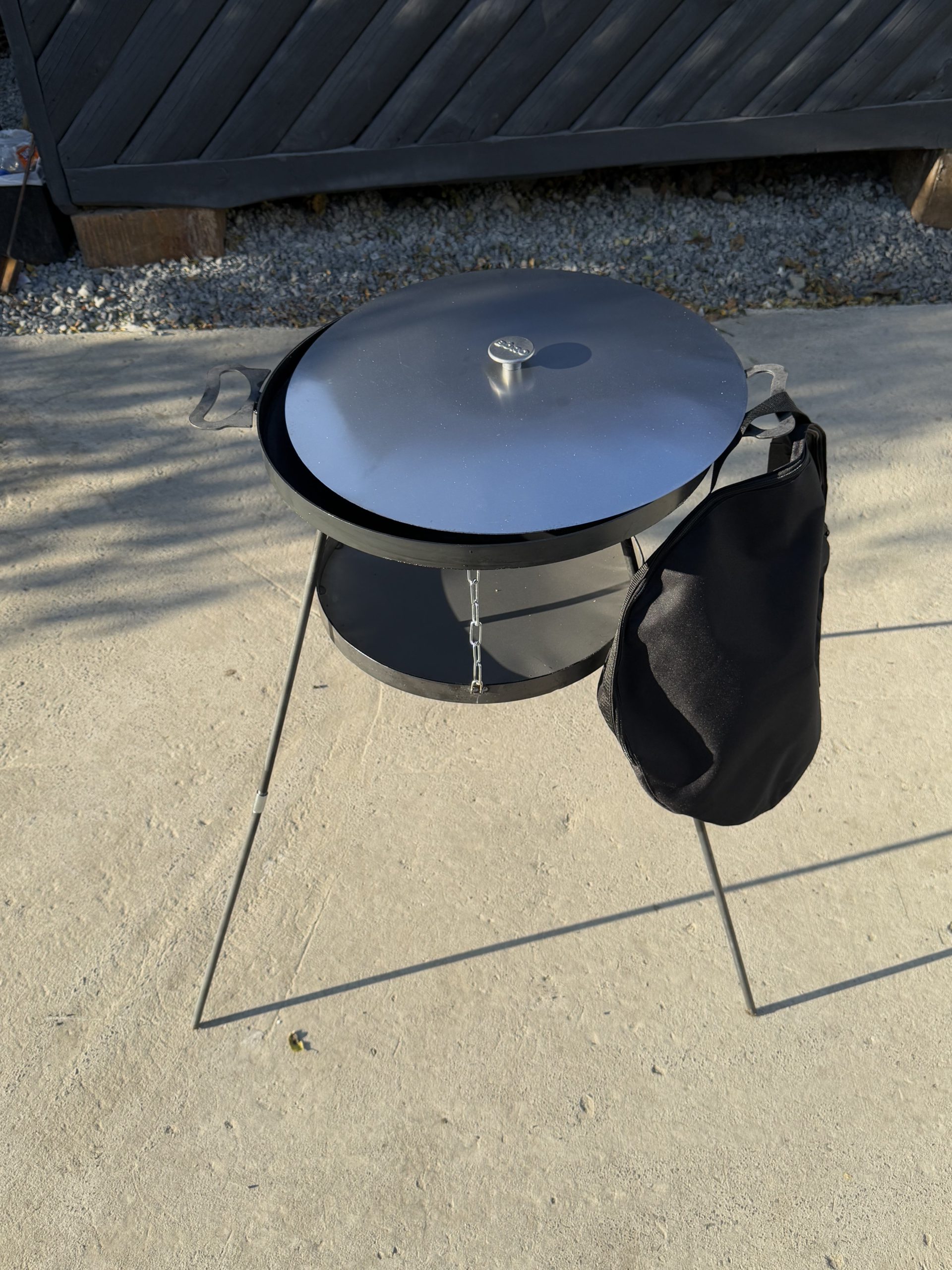Сковорода з диска борони Садж преміум – це чудовий набір для приготування улюблених страв на відкритому вогні: овочі, м’ясо, риба та ін.