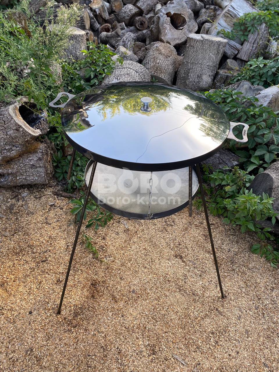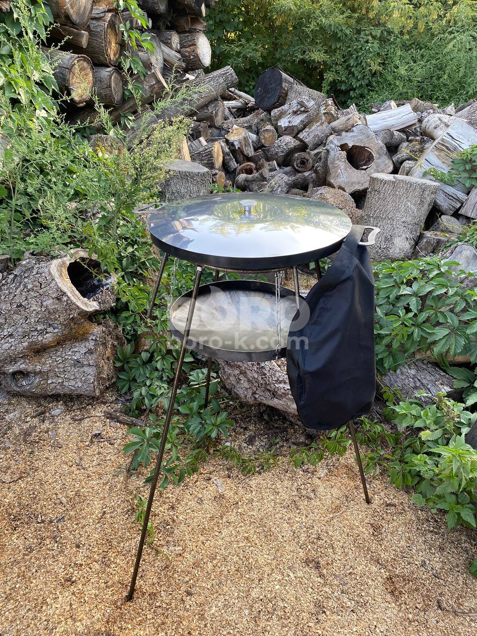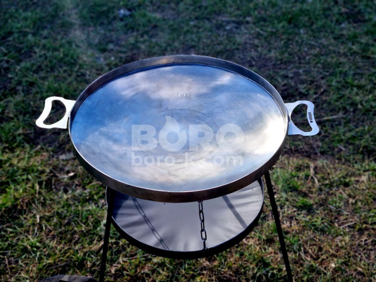 Сковорода з диска борони з універсальною повітряною підставкою є найкращим аналогом громіздких мангалів та барбекюшниць. Завдяки їй Ви захистите газон від псування вогнем, розклавши багаття на спеціальному металевому піддоні.
